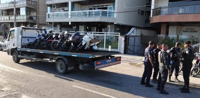 A operação foi realizada na Avenida Hilton Massa, em frente à Praia do Forte, próximo aos locais interditados em virtude das montagens de palcos e estruturas para o Réveillon 2026. Dezenas de motos foram apreendidas e encaminhadas ao Depósito Público Municipal.