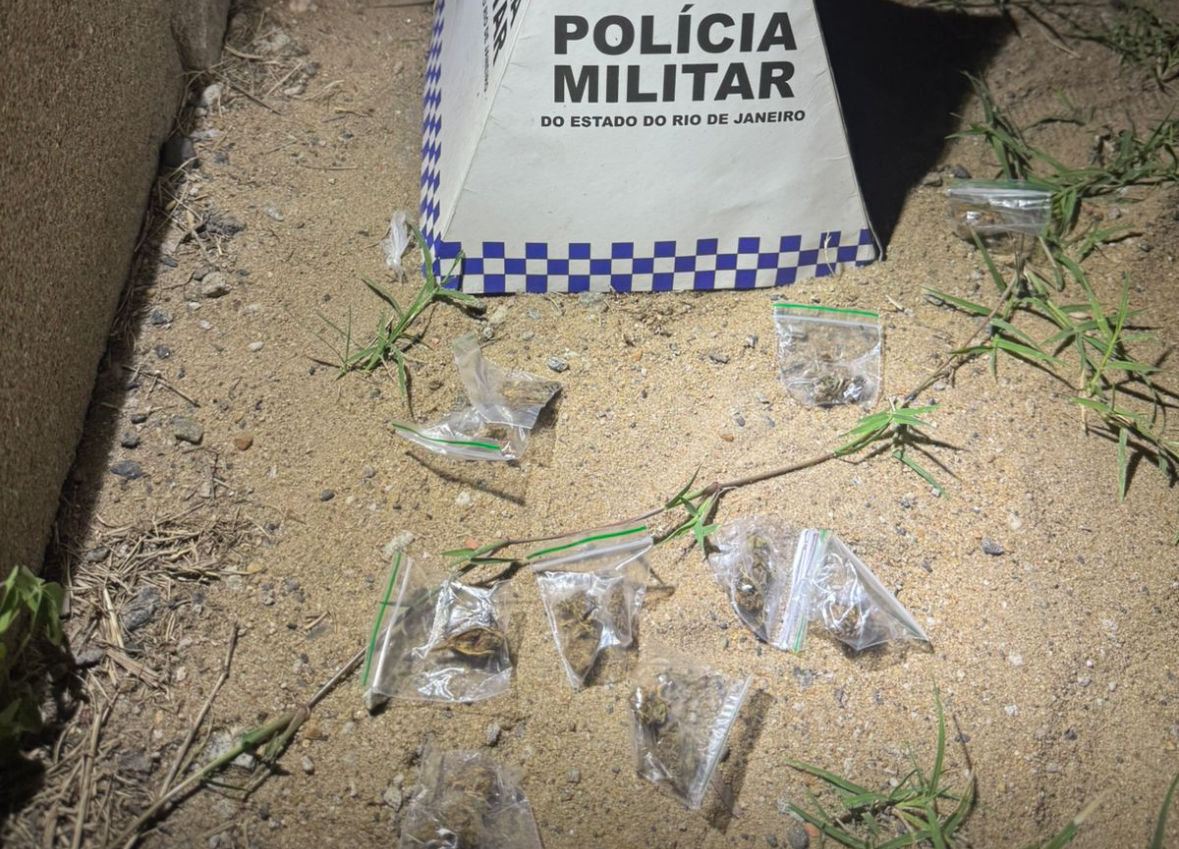Dois homens foram presos em flagrante por tráfico de drogas no sábado (20), na Rua Márcio O. Pinheiro em Grussaí, São João da Barra.