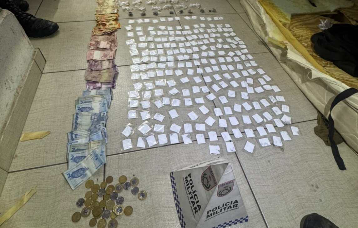 Após receberem informações sobre uma residência que estaria sendo utilizada pelo tráfico de drogas para guarda de materiais entorpecentes, policiais foram ao local onde observaram uma mulher com um carrinho de bebê saindo da residência. Ela foi abordada e indagada sobre o material entorpecente e os policiais entraram na residência, logo foram localizadas 118 pedras de crack, 228 papelotes de cocaína, 08 buchas de maconha, 01 aparelho celular e R$ 861,50 reais em espécie.