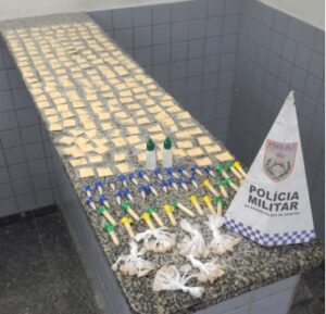 Já na quarta-feira, uma equipe policial realizava patrulhamento na Estrada do Fio, em Travessão de Campos, quando encontraram dois homens saindo de uma área de mata, onde foi encontrada uma sacola contendo 1.200 papelotes de cocaína, 548 pinos de cocaína, 60 buchas de haxixe, 30 pedras de crack.
