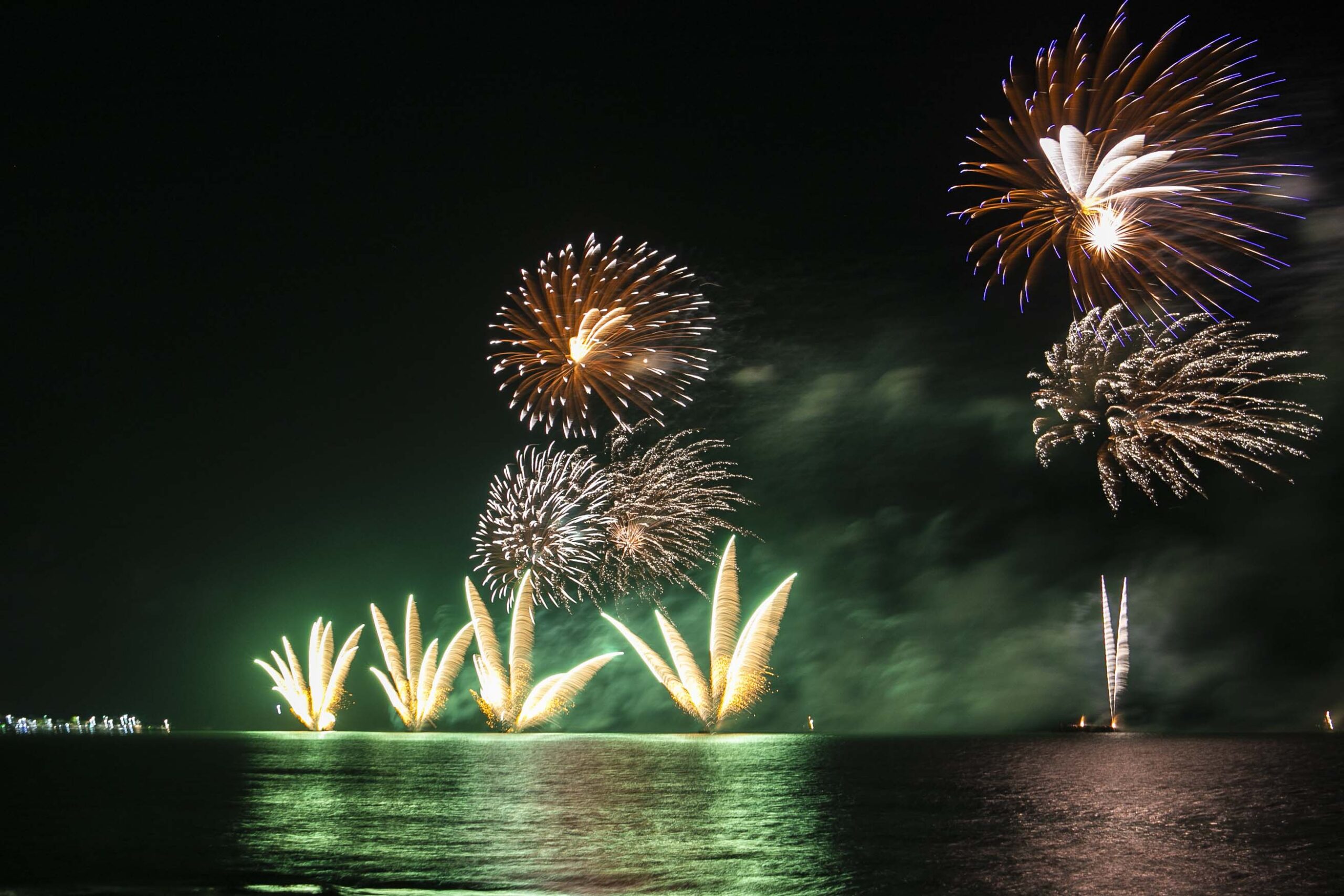 No Centro, o destaque ficará por conta dos fogos musicados, sincronizados com trilha sonora mecânica e efeitos visuais. Para a apresentação, balsas e flutuadores serão posicionados nas praias do Centro e da Tartaruga, garantindo ampla visibilidade, que se estende até a Praia do Abricó.